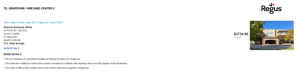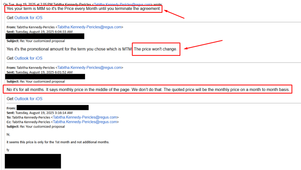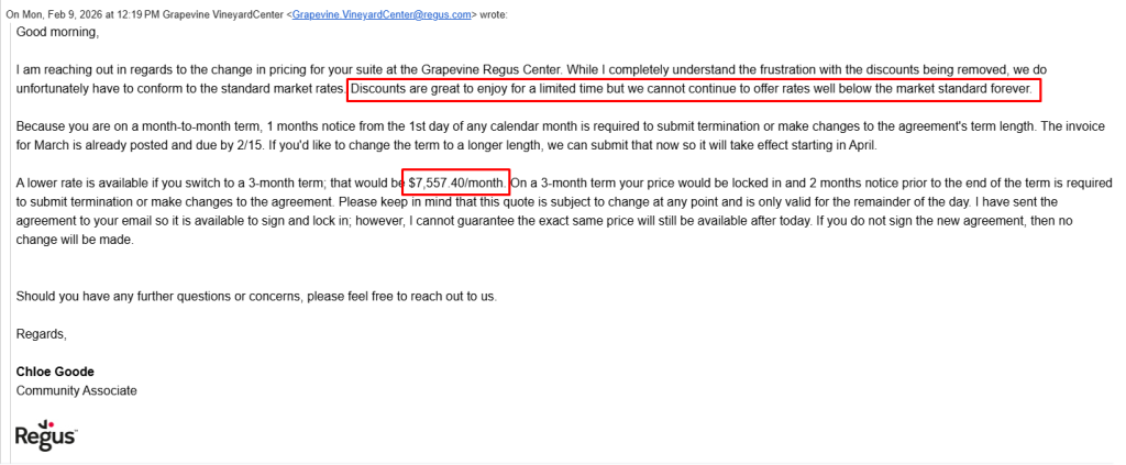 Regus's confirmation in writing that the pricing WILL NOT change: